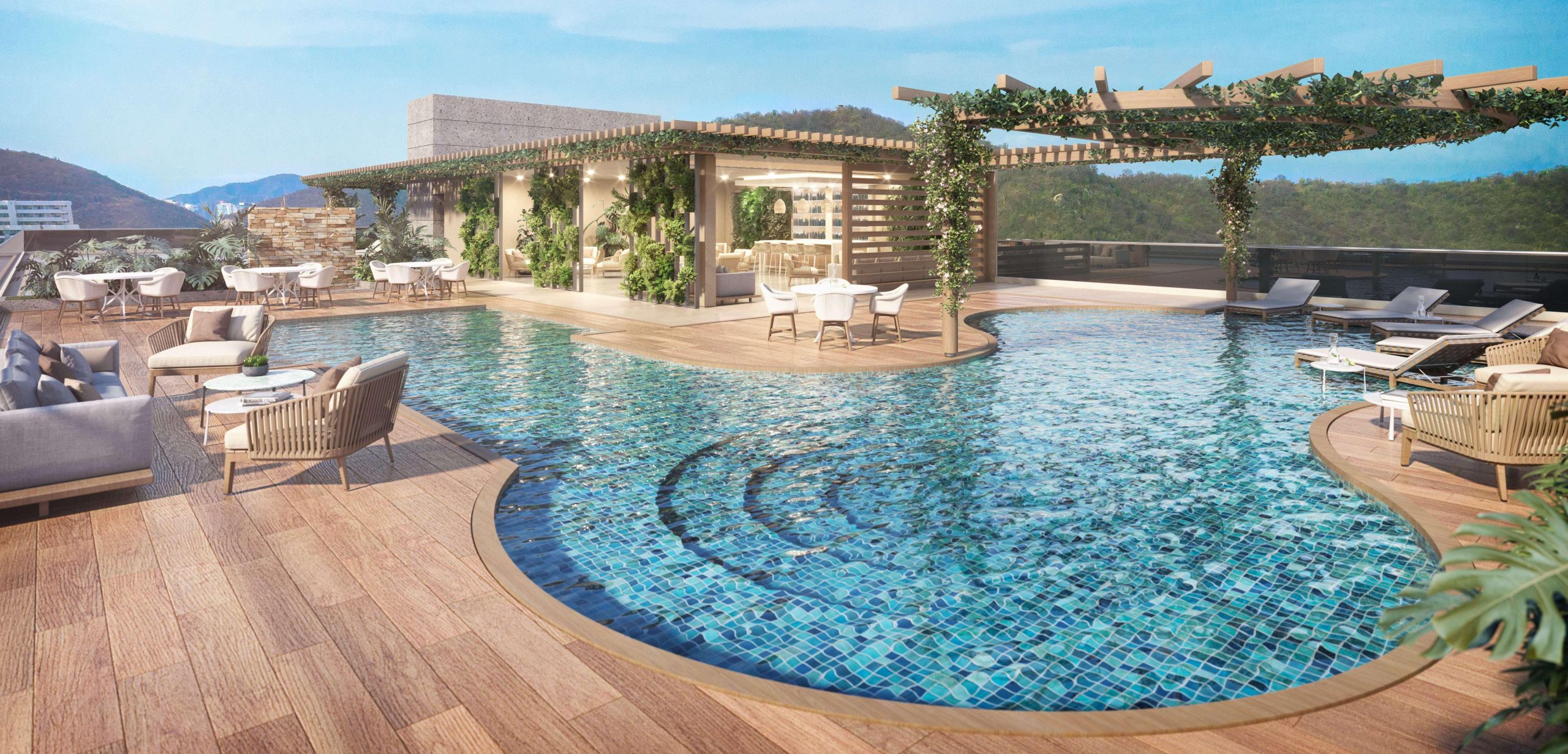 El proyecto cuenta con amenidades de lujo que contribuyen al confort de los residentes, como una terraza de yoga , sala de juegos , bar lounge y piscina en la cubierta.
